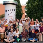 Unser diesjähriges Highlight war das Sommerkonzert, das wir in der Lukaskirche zum Besten gaben. Es stand unter dem Motto „Rythm of Life“ und wir präsentierten in fast 1 ½ Stunden grundverschiedene Stücke aus verschiedenen Epochen. Neben reinem A-capella-Gesang und instrumental begleiteten Kompositionen in konventioneller Chor-Aufstellung beinhaltete das Programm  auch einige szenisch unterstützte Stücke mit ungewöhnlichen Choreografien sowie Präsentationen von kleineren Abteilungen des Chores. Erwähnt werden sollen unsere Ausschmückungen zu den Stücken „Tourdion“, „Drunken Sailor“, dem „Cup-Song“ und „Mein Fahrrad“. Das Publikum war begeistert und am Ende gab es tosenden Applaus.