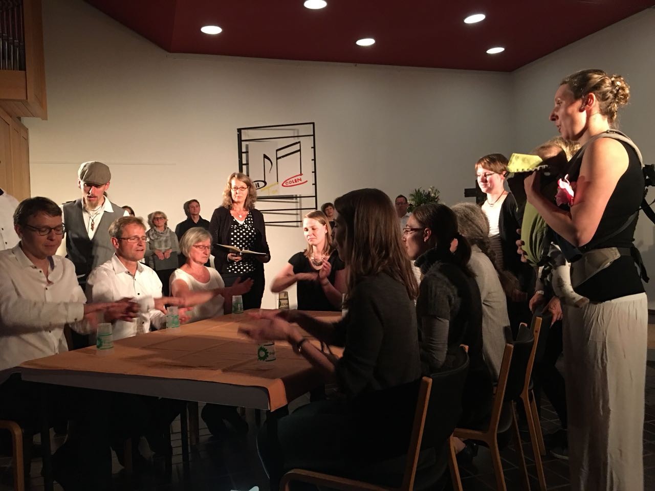 Im kleinen Kreis haben wir uns von 10 bis 16h im Übungsraum unter der Lukaskirche getroffen und jeder hat etwas Leckeres zu Essen für die Pause mitgebracht. Während der Fortbildung herrschte eine angenehme und wertschätzende Atmosphäre, sodass keine Hürden bestanden vermeintlich blöde Fragen zu stellen. Simone und Mario haben sich wirklich sehr gut vorbereitet und mit verschiedenen methodischen Mitteln die Grundlagen der Notenlehre vermittelt.