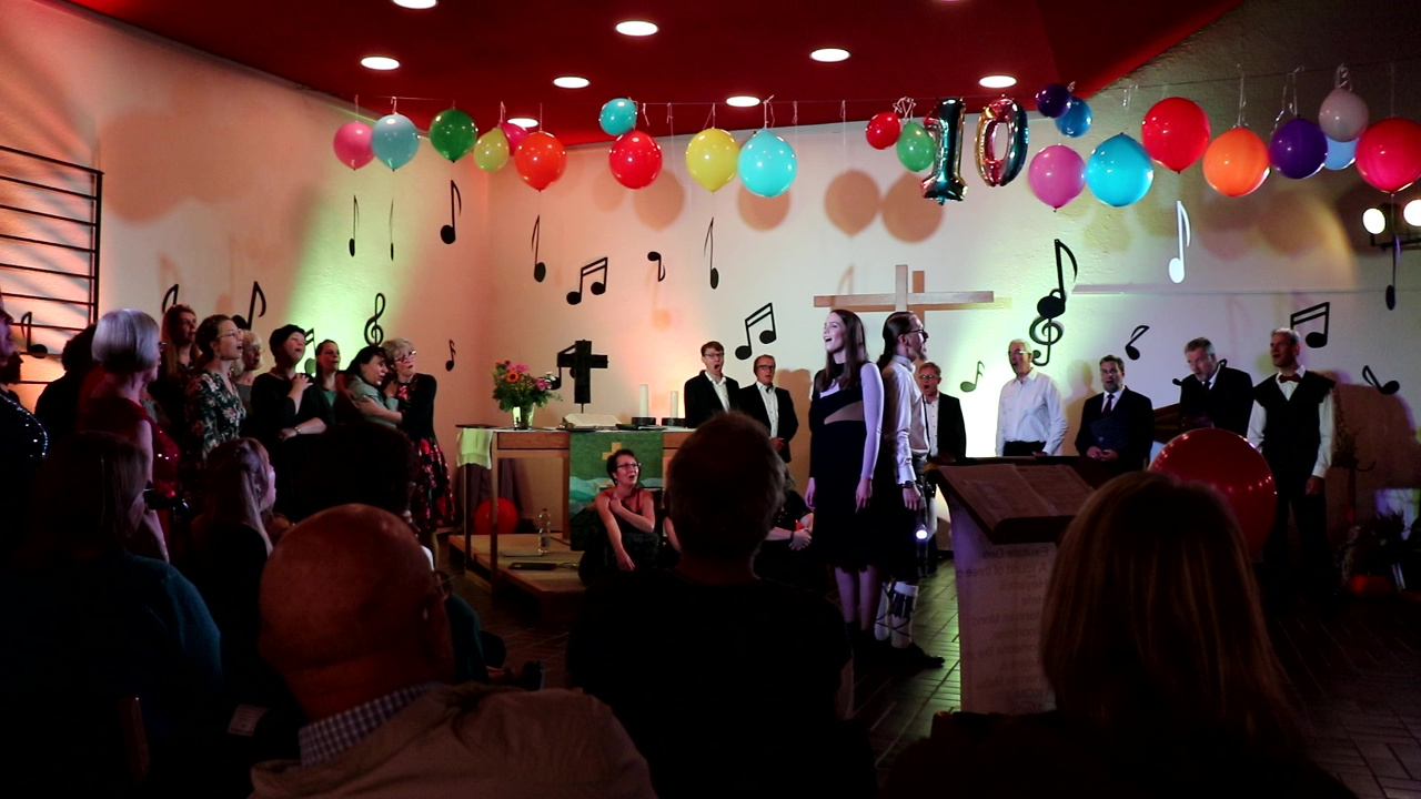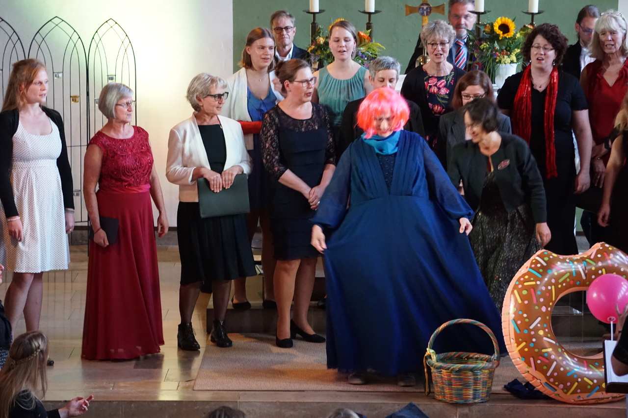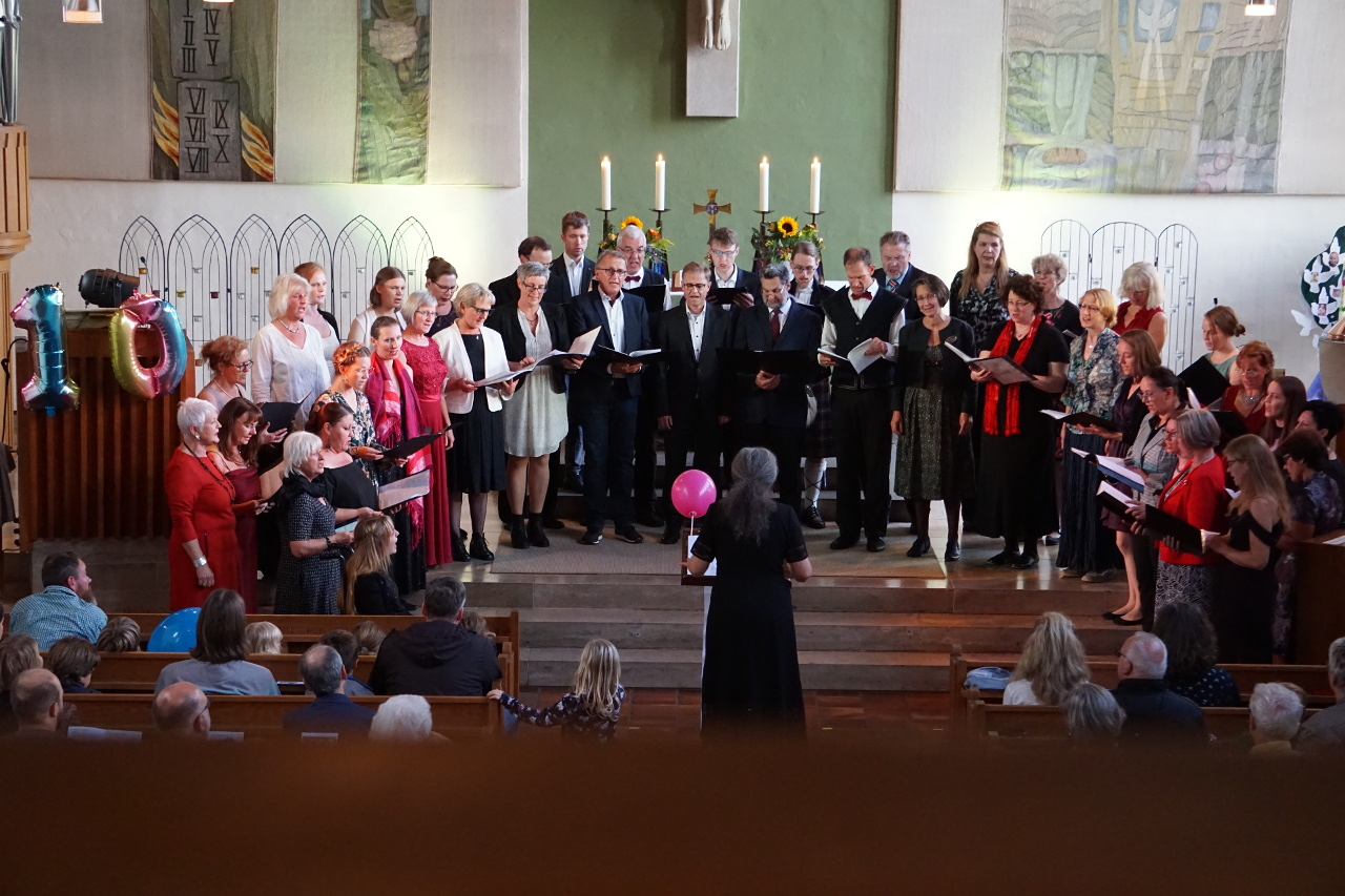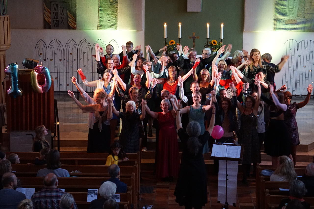 Ein wichtiges Ereignis in diesem Sommer war das Gemeinschaftskonzert aller von Simone Weisensee geleiteten Chören im großen Gemeindesaal der 12-Apostel-Gemeinde Hildesheim. Unser Beitrag war ein ca. halbstündiges Programm als Vorschau auf unsere kommenden Jubiläumskonzerte, bei dem wir zum Teil von Simones Kinder-Chorgruppe unterstützt wurden.