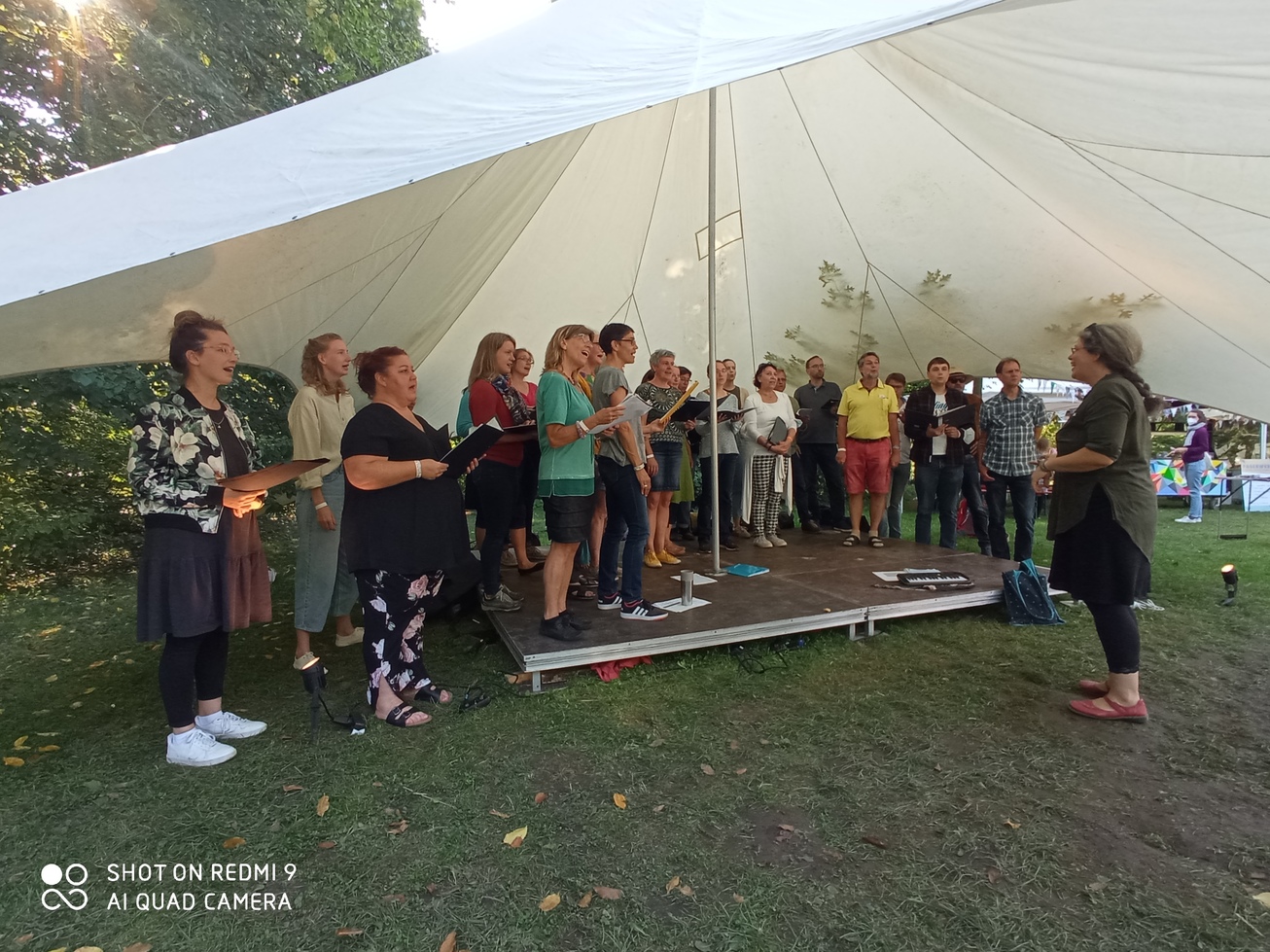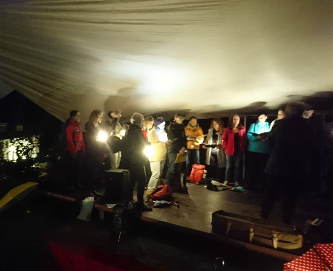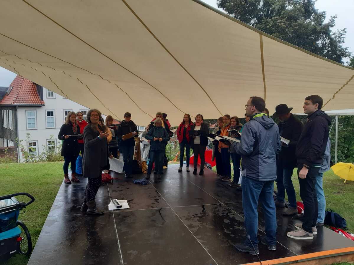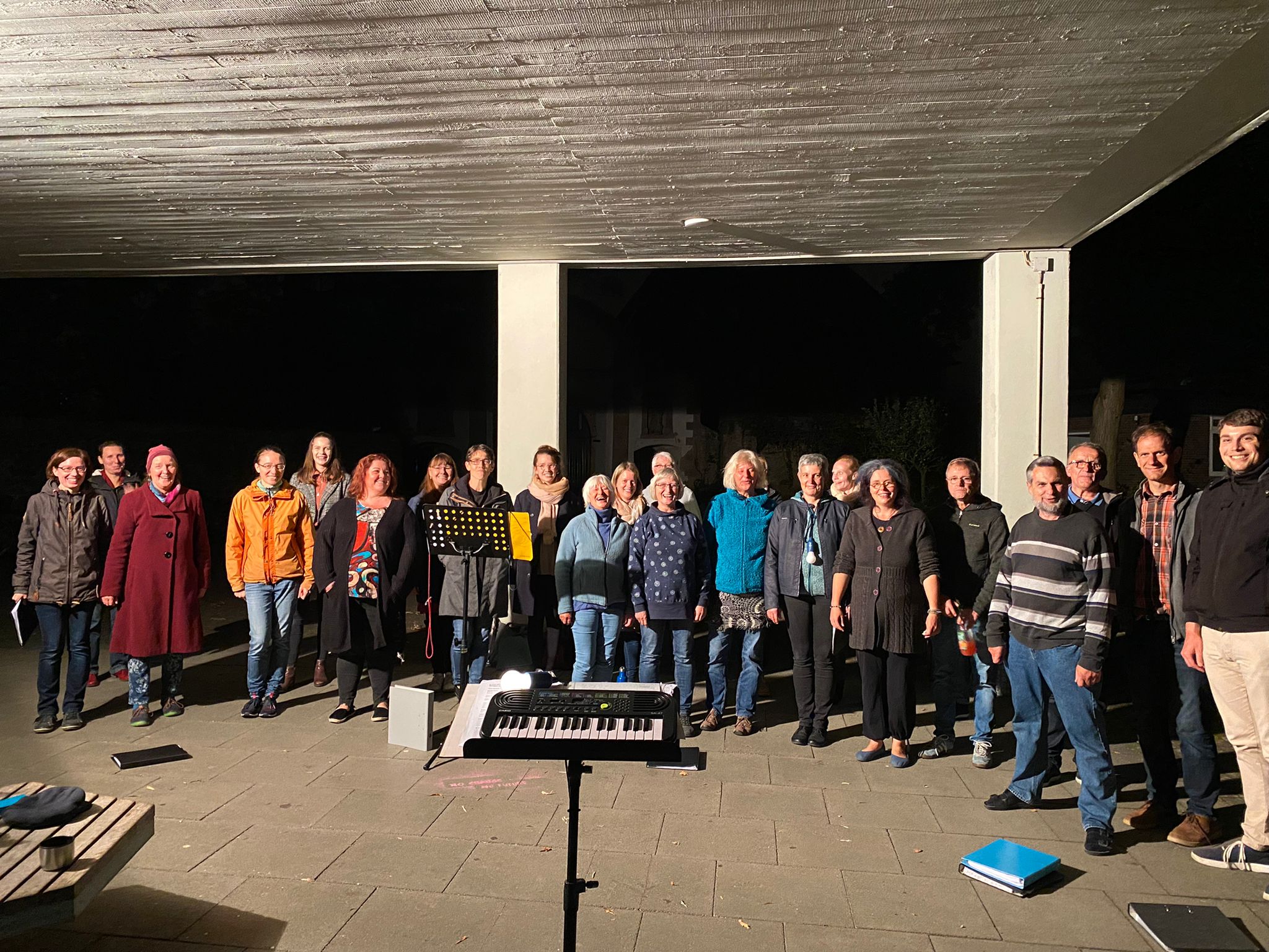 Unsere "offene Probe" am 18.09.2021 auf dem Schulhof des Andreanum war ein schöner, weitestgehend trockener und vor allem windstiller Ausklang für die Proben dort. Unterm Dach mit Laterne und Stühlen hatten es sich alle ZuhörerInnen bequem gemacht, auch wenn sie zwischendurch zum Mitsingen und -tanzen animiert wurden. Über eine Stunde Programm in lockerer Atmosphäre wurde geboten und auch ganz neue unfertige Stücke, wie der Wellerman, wurden geprobt. Über Hassler, Brahms, Comedian Harmonists, afrikanischen und englischen Gospel bis hin zum Pop war alles dabei. Im Anschluss gab es etwas zu Tinken für den Becher, den sich jeder mitgebracht hatte, und auch für den Magen hatten die SängeriInnen gesorgt. Bis kurz vor Mitternacht stand und saß man fröhlich an der Tischtennisplatte zusammen.Zuletzt aktualisiert: 18. Februar 2026.