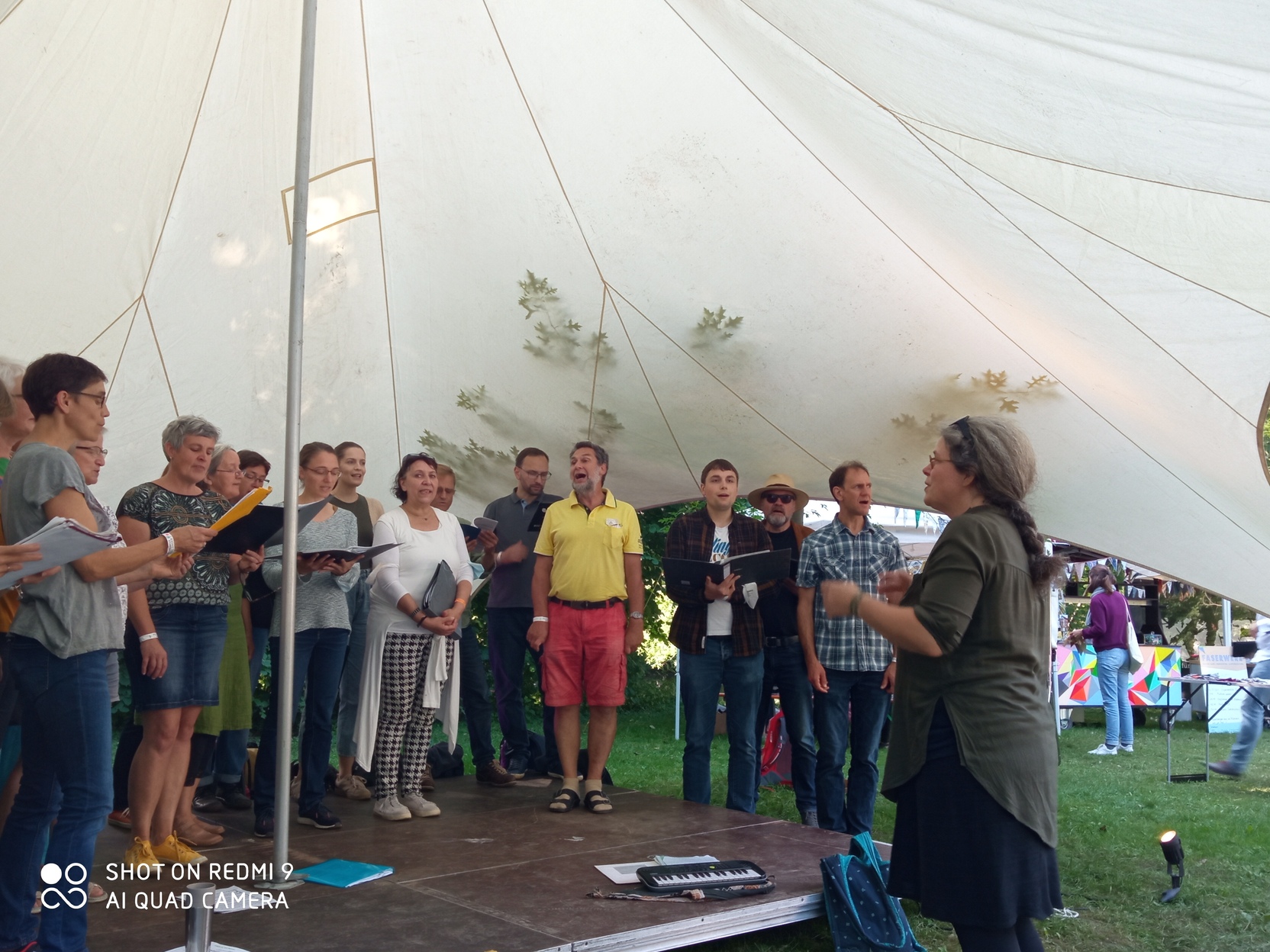 Um die während der langen Unterbrechung entstandenen größeren Lücken im Repertoire aufzuarbeiten, trafen wir uns zu einer mehrstündigen Probe in der Sporthalle in Adensen. Hier erlebten wir useren Klang in verschiedenen Konstellationen und mittags gab es bei strahlender Sonne Picknick.28. 8. und 5. 9. Auftritte bei Hildesheimer Wallungen