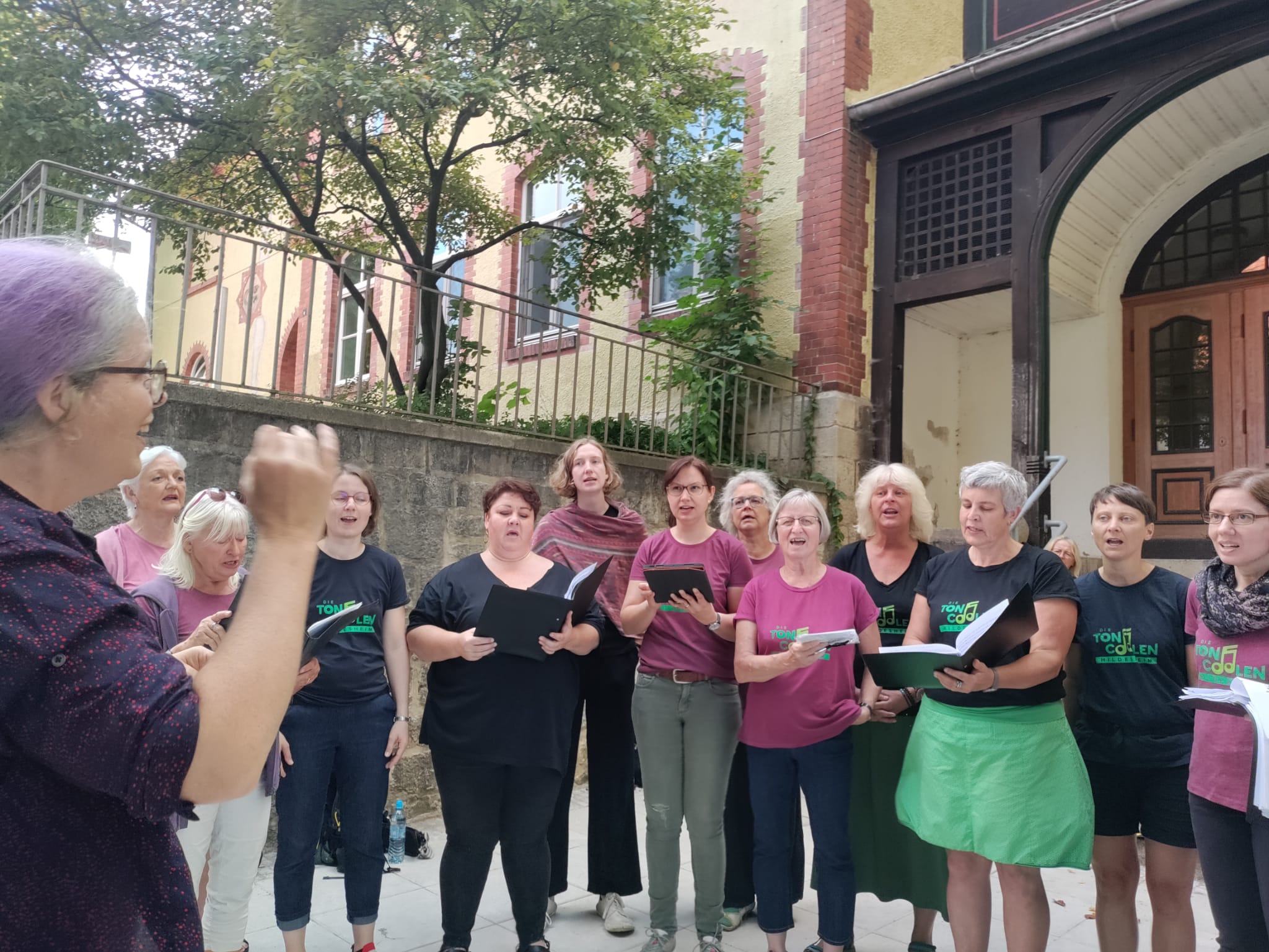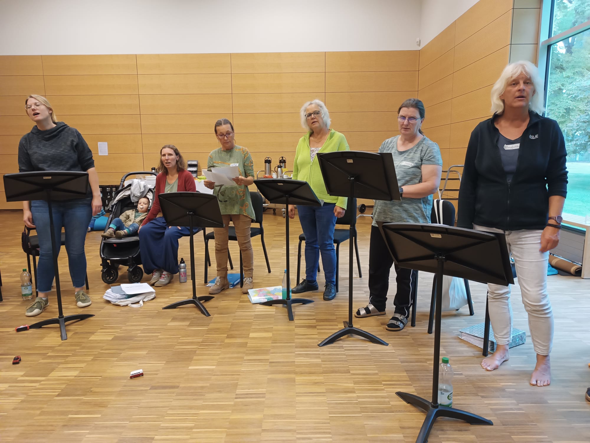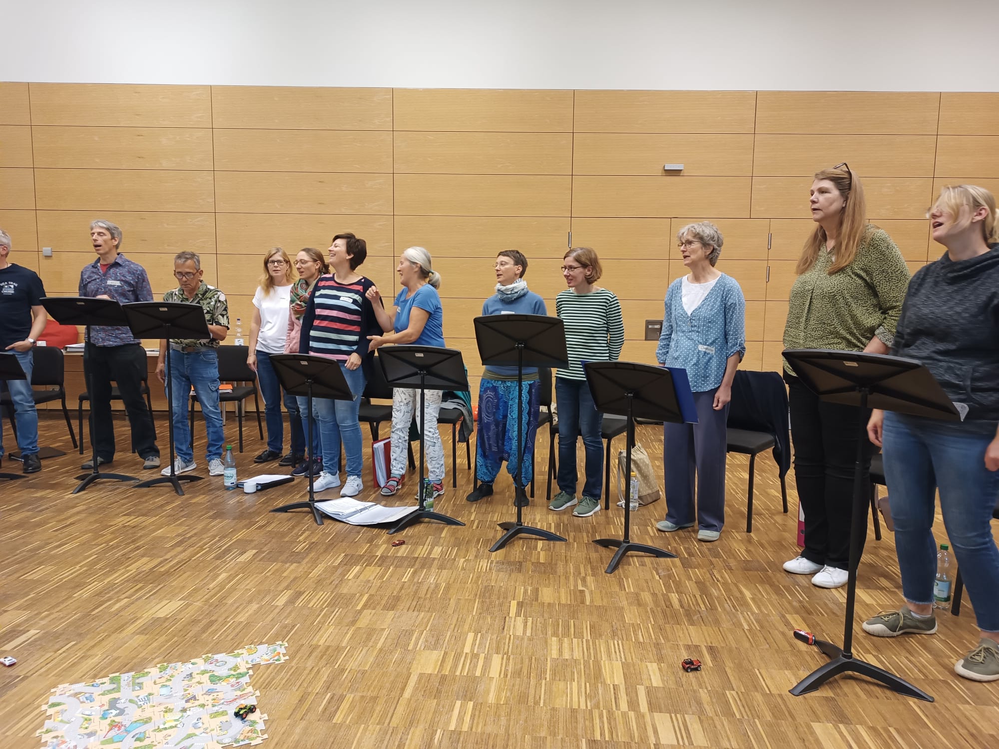 Bei herrlichstem Hochsommerwetter mit Temperaturen nahe 30° sangen wir nach Ende des Bobby-Car-Rennens unser diesjähriges Programm auf dem Stadtteilfest am Moritzberg. Nach einem eher gemütlichen Einsingen in einer Seitenstraße vor der Grundschule stürzten wir uns in's Gewühl. Die Stimmung war ausgezeichnet, die Akustik an unserem Auftrittsort gegenüber der Tischlerei Hessing den Umständen entsprechend gut. Mit unserer vielseitigen Auswahl konnten wir das Laufpublikum interessieren und hatten selbst auch sehr viel Freude daran.22. bis 24. 9. Proben- und Freizeitwochenende