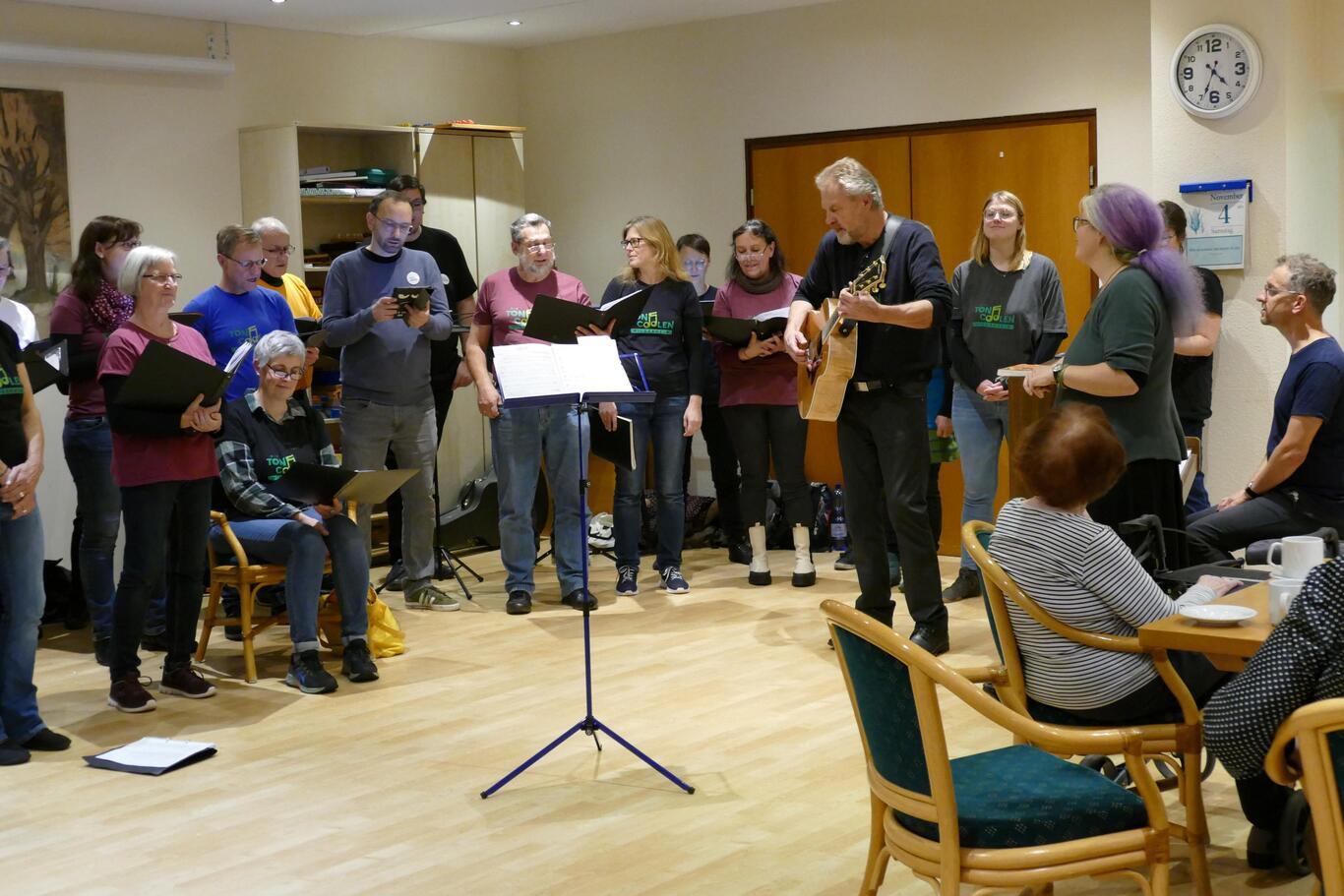 Als letzten Auftritt in diesem ereignireichen Jahr sangen wir an einem sonst eher trüben Nachmittag im Evangelischen Altenheim "Am Steinberg" in der Schlesierstraße 7. In dem gut besuchten Gemeinschaftsraum präsentierten wir eine bunte Mischung aus effektvolleren Arrangements aus unserem diesjährigen Programm sowie einigen bekannten Melodien, die von den Bewohnern mitgesummt werden konnten.Dienstag, 19. 12. Weihnachtlicher Ausklang